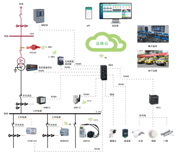 變電所運(yùn)維云平臺基于互聯(lián)網(wǎng)+、大數(shù)據(jù)、移動通訊等技術(shù)開發(fā)的云端管理平臺,滿足用戶或運(yùn)維公司監(jiān)測眾多變電所回路運(yùn)行狀態(tài)和參數(shù)、室內(nèi)環(huán)境溫濕度、電纜及母線運(yùn)行溫度、現(xiàn)場設(shè)備或環(huán)境視頻場景等需求,實現(xiàn)數(shù)據(jù)一個中心,集中存儲、統(tǒng)一管理,方便使用,支持具有權(quán)限的用戶通過電腦、手機(jī)、