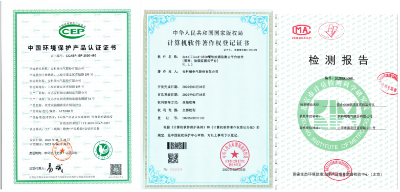 認(rèn)證證書(shū))并取得對(duì)應(yīng)的軟件測(cè)試報(bào)告《油煙濃度在線(xiàn)監(jiān)測(cè)儀測(cè)試報(bào)告》,還取得計(jì)算機(jī)軟件著作權(quán)。