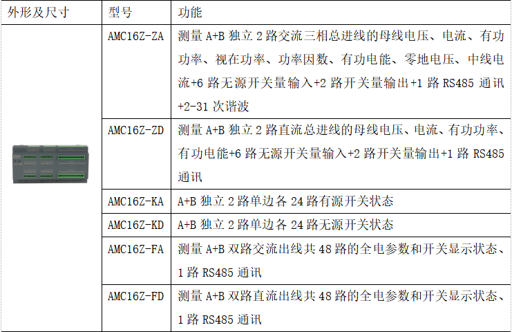 表2 安科瑞智能母線測(cè)控儀表選型表