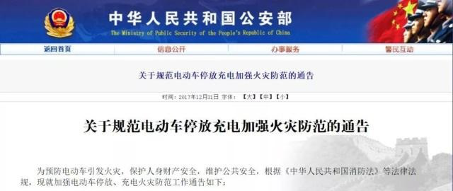 電動(dòng)自行車(chē)的安全隱患引起了各級(jí)政府部門(mén)的重視,20171229日公安部消防局發(fā)布《關(guān)于規(guī)范電動(dòng)車(chē)停放充電加強(qiáng)火災(zāi)防范的通告》,要求充分認(rèn)識(shí)電動(dòng)車(chē)火災(zāi)危害,落實(shí)停放充電管理責(zé)任,規(guī)范電動(dòng)車(chē)停放充電行為,嚴(yán)厲查處違規(guī)停放充電行為。