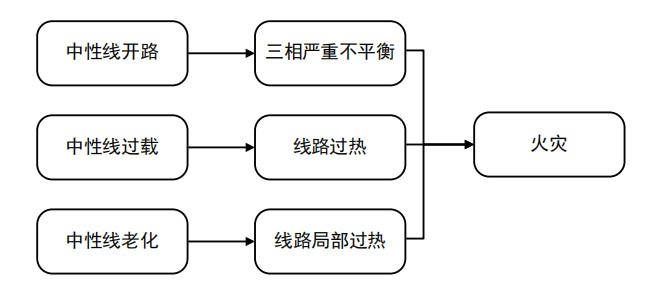 在三相四線制或五線制供電系統(tǒng)運(yùn)行過程中,中性線引發(fā)火災(zāi)事故主要通過三種途徑: