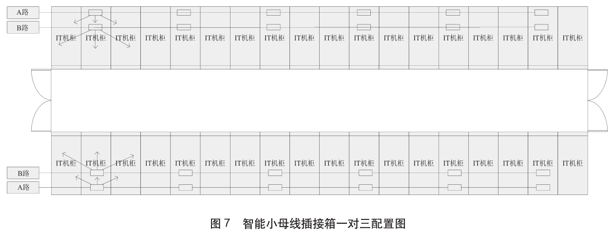 (5)對于分批次部署服務(wù)器的數(shù)據(jù)中心,或后期需要進行末端負荷調(diào)整的數(shù)據(jù)中心,強烈建議采用滑軌式的智能小母線配電方案;如果是一次性部署服務(wù)器或是方案固定的數(shù)據(jù)中心,可采用列頭柜加電纜的配電方案。