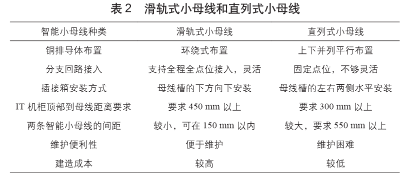 (2)智能小母線分為滑軌式小母線和直列式小母線,考慮到機房的實際應(yīng)用環(huán)境,推薦采用滑軌式小母線,不建議采用直列式小母線。