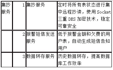 現(xiàn)場設備層主要為:遠程預付費電度表。這些裝置分別對應相應的一次設備安裝在電氣柜內(nèi),這些裝置均采用RS485通訊接口,通過現(xiàn)場MODBUS總線組網(wǎng)通訊,實現(xiàn)數(shù)據(jù)現(xiàn)場采集。 網(wǎng)絡通訊層主要為:通訊服務器,其主要功能為把分散在現(xiàn)場采集裝置集中采集,同時傳至站控層,完成現(xiàn)場層和站控層之間的數(shù)據(jù)交互。 站控管理層:設有高性能工業(yè)服務器、顯示器、UPS電源、打印機等設備。監(jiān)控系統(tǒng)安裝在服務器上,集中采集顯示現(xiàn)場設備運行狀況,以人機交互的形式顯示給用戶。 智能儀表現(xiàn)場連接示意 現(xiàn)場智能裝置(遠程預付費電度表)以手拉手方式通過屏蔽雙絞線(RVVSP2*1.0)進行通訊連接,每根總線連接智能儀表數(shù)量在32只以內(nèi),不同種類的智能裝置連接在不同的總線上,然后將數(shù)據(jù)上傳至采集器,進而將數(shù)據(jù)上傳至監(jiān)控主機。具體連接示意圖如下所示: 3 系統(tǒng)功能 整個系統(tǒng)軟件設計分為三個大塊,分別是集中抄表服務系統(tǒng),遠程預付費電能管理系統(tǒng),以及用戶查詢系統(tǒng)。 集中抄表服務程序常年運行,不間斷定時對所有表進行遠程抄表;遠程預付費系統(tǒng)包含所有開戶、售電、遙控及報表功能;用戶查詢機系統(tǒng)用于用戶查詢個人信息、充值和用電情況;另外還可配置手機端查詢網(wǎng)站,可用于用戶在手機網(wǎng)站終端上實時查詢個人信息、充值、遠程控制及每日用電情況,如果條件滿足,還支持用戶使用支付寶銀聯(lián)等方式遠程自助購電。 主要特點如下: u 快速配置,即裝即用:將電表和通訊管理機配置導入系統(tǒng)就可以使用; u 遠程集中抄表:免去人工抄表,電表狀態(tài)實時性最高可精確到3分鐘以內(nèi); u 支持單獨計價、多費率、階梯電價:可對每塊電表單獨設置電價、費率和階梯電價; u 遠程售電:財務集中管理,電量實時下發(fā),并比對充值次數(shù)防止作弊; u 數(shù)據(jù)安全:網(wǎng)絡數(shù)據(jù)傳輸采用金融級的3DES加密算法,防止數(shù)據(jù)作弊竊電; 手機短信提醒:當金額不足或金額欠費,共三級u 預警,都可及時短信通知商戶; u 遠程控制:可對任意一塊電表執(zhí)行遠程拉閘或保電等一系列遠程控制操作,方便管理; u 能耗分析及查詢:用戶和管理員都可查詢預付費表或各類接入的計量儀表每天的用能狀況; u 個人手機查詢網(wǎng)站:支持手機端用戶自主購電,自主查詢。 傳統(tǒng)的IC卡預付費售電管理系統(tǒng)實現(xiàn)了先交費后用電的管理模式,但由于抄收電表數(shù)據(jù)依賴于購電卡,用戶用電數(shù)據(jù)滯后于發(fā)生時間,不僅需要人工抄表,也無法有效進行用電管理、監(jiān)控和實時控制。 利用遠程預付費電能管理系統(tǒng),無需IC卡,可以實現(xiàn)計算機遠程集中抄表、實時監(jiān)控、遠程充值和遠程控制,再通過預警信息和短信通知,以及手機網(wǎng)站,物管部門即可完成整個抄表、收費、控制和核查工作,實現(xiàn)高度信息化和自動化,大大提高用電營銷管理效率和水平,節(jié)約人力物力的同時,也提高了經(jīng)濟效益,同時還具有防信息泄露防竊電的安全功能。 ①集中抄表服務系統(tǒng) 集中抄表服務程序包含三大模塊,除了常年運行的定時對所有儀表進行集中遠程抄表以外,還集成了報警短信發(fā)送服務,能將電費金額預警和欠費預警自動生成手機短信自發(fā)送給對應的用戶,該功能需要與硬件短信貓配合使用。系統(tǒng)默認半小時對所有表進行一次遠程集中抄表,時間間隔支持個性化配置。 ②遠程預付費電能管理系統(tǒng) 本系統(tǒng)分為五大模塊,分別是操作員登陸模塊、系統(tǒng)配置模塊、用戶(商鋪)管理模塊、售電管理模塊、報表中心模塊,系統(tǒng)大致運行和操作流程如下: 本系統(tǒng)所有的報表及記錄查詢,都支持excel格式導出的功能。 1.登陸管理:管理操作員賬戶及權(quán)限分配,查看系統(tǒng)日志等功能; 2.系統(tǒng)設置:對建筑、通訊管理機、儀表及默認參數(shù)進行配置; 3.用戶管理:對商鋪用戶執(zhí)行開戶、銷戶、遠程分合閘、抄表導出及記錄查詢等操作; 4.售電管理:對已開戶的表進行遠程售電、退電、沖正及記錄查詢等操作; 5.報表中心:提供售電財務報表、用能報表、報警報表等查詢。