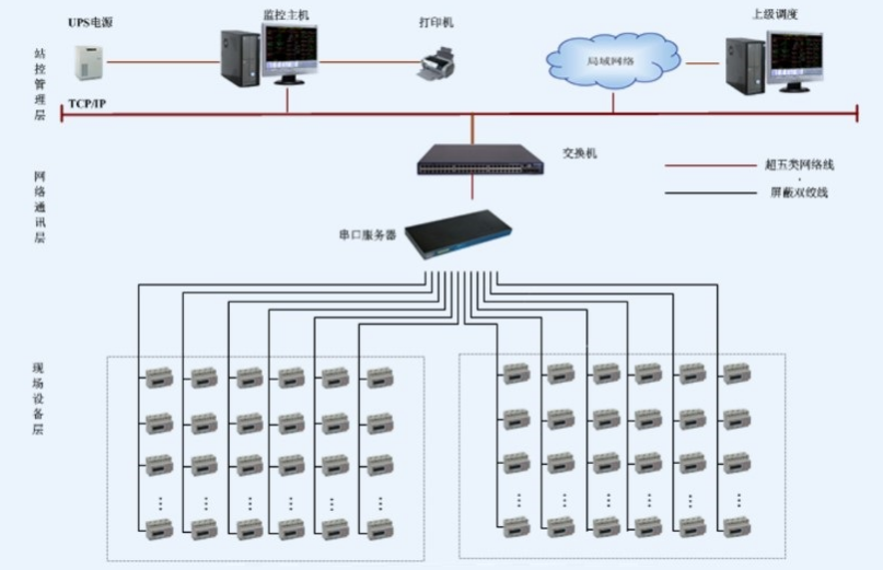 安科瑞Acrel-5000建筑能耗分析管理系統(tǒng)以工作站主機(jī)、通訊設(shè)備、測(cè)控單元為基本工具,為大型公共建筑的實(shí)時(shí)數(shù)據(jù)采集、開(kāi)關(guān)狀態(tài)監(jiān)測(cè)及遠(yuǎn)程管理與控制提供了基礎(chǔ)平臺(tái),它可以和檢測(cè)、控制設(shè)備構(gòu)成任意復(fù)雜的監(jiān)控系統(tǒng)。該系統(tǒng)主要采用分層分布式計(jì)算機(jī)網(wǎng)絡(luò)結(jié)構(gòu),如系統(tǒng)結(jié)構(gòu)圖所示:高密科技孵化器項(xiàng)目能耗系統(tǒng)站控管理層及網(wǎng)絡(luò)通訊層?,F(xiàn)場(chǎng)共有46只安科瑞DTSD1352電能表。