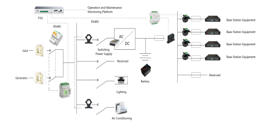 基站智慧用電云平臺(tái)通過(guò)對(duì)5G宏站和室分站點(diǎn)加裝交/直流智能監(jiān)控設(shè)備、無(wú)線采集設(shè)備以及系統(tǒng)管理平臺(tái),完成夜間無(wú)業(yè)務(wù)時(shí)段的下電操作,減少電能消耗,降低運(yùn)營(yíng)成本支出,以及提升通信設(shè)備供電線路狀態(tài)的實(shí)時(shí)監(jiān)測(cè)保護(hù)功能;系統(tǒng)后臺(tái)對(duì)存儲(chǔ)的供電線路歷史電氣性能數(shù)據(jù)進(jìn)行梳理、匯總、分析,找出故障原因,給出解決建議對(duì)策,減少后續(xù)同類故障的發(fā)生率,提升供電線路運(yùn)維管控能力。
