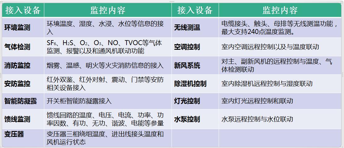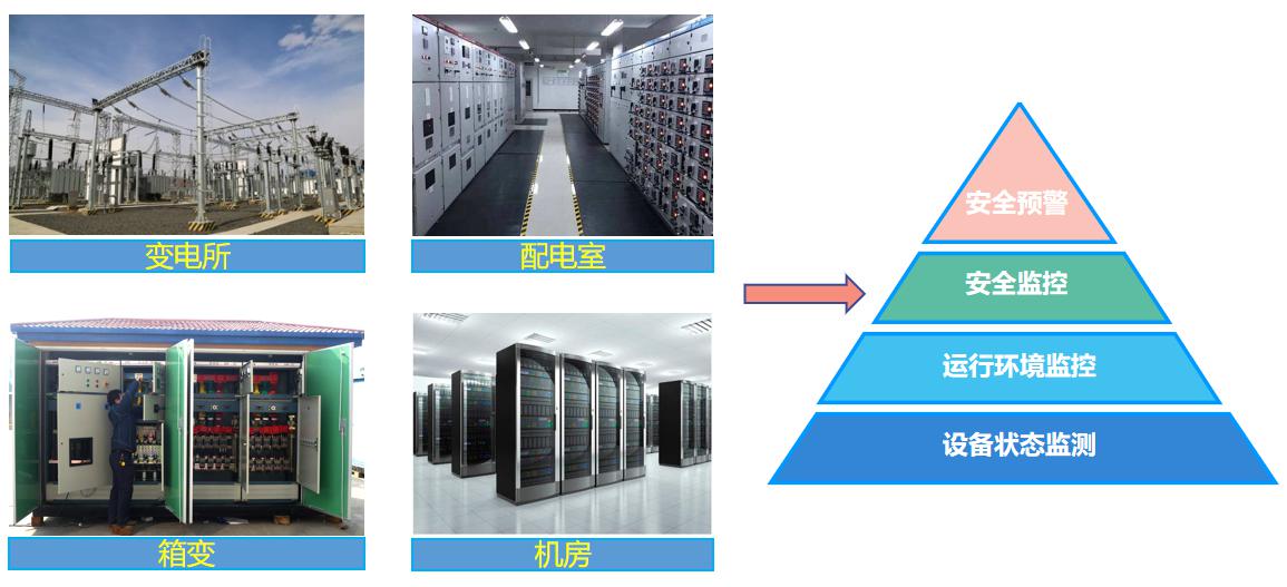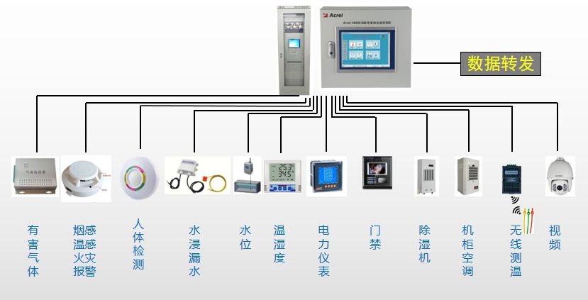 配電室綜合監(jiān)控設(shè)備安裝在配電室、箱變、變電所內(nèi),通過(guò)采集和傳輸技術(shù),可以實(shí)時(shí)監(jiān)測(cè)配電室內(nèi)的重要場(chǎng)所和設(shè)備的工作環(huán)境,如溫度、濕度、電纜溝水位、漏水/水浸、有害氣體(SF