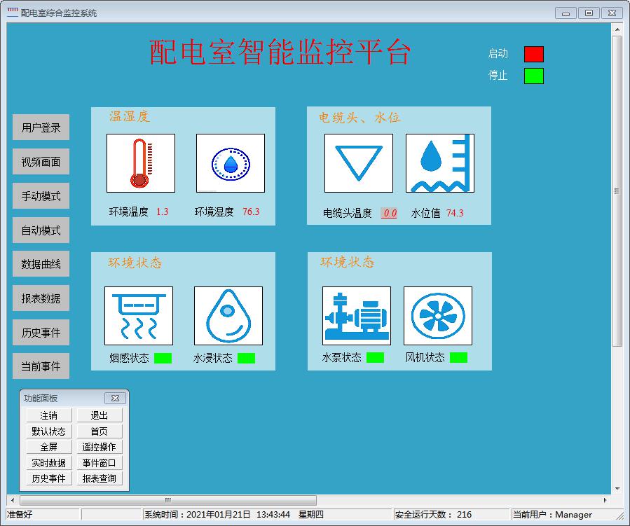 當(dāng)檢測(cè)到環(huán)境量出現(xiàn)異常時(shí),可及時(shí)顯示、報(bào)警,并可通過(guò)通信網(wǎng)絡(luò)將數(shù)據(jù)上傳至系統(tǒng)平臺(tái)。根據(jù)預(yù)先設(shè)置的上下限值,聯(lián)動(dòng)控制空調(diào)、視頻、燈光、加熱裝置、除濕器、通風(fēng)機(jī)、聲光報(bào)警等設(shè)備。保障配電室場(chǎng)所的電力設(shè)備安全運(yùn)行。防止因環(huán)境改變、非授權(quán)活動(dòng)、設(shè)備狀態(tài)變化等引起的事故,滿足配電室遠(yuǎn)程運(yùn)維的可靠管控要求。為新型現(xiàn)代化配電室的智能化、可視化、自動(dòng)化、互動(dòng)化做有效支撐。