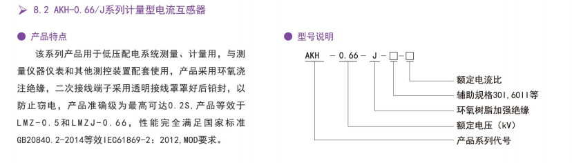 AKH-0.66 J系列計(jì)量型電流互感器產(chǎn)品用于低壓配電系統(tǒng)測量、計(jì)量用,與測量儀器儀表和其他測控裝置配套使用,產(chǎn)品采用環(huán)氧澆注絕緣,二次接線端子采用透明接線罩罩好后鉛封,以防止竊電,產(chǎn)品準(zhǔn)確級為最高可達(dá)0.2S產(chǎn)品等效于LMZ-0.5和LMZJ-0.66,性能滿足國家標(biāo)準(zhǔn)GB20840.2-2014(等效IEC61869-2:2012MOD)要求。