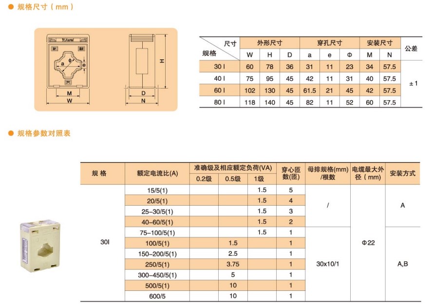 產(chǎn)品翻蓋式設(shè)計,外形美觀,接線方便。翻蓋材料選用透明聚碳酸酯,能清楚看到二次引線接線情況。方圓組合孔型,既可穿越電纜,也可穿越匯流排,作為交流電流信號采集元件,一般與測量儀表配套使用廣泛應(yīng)用于電氣成套。