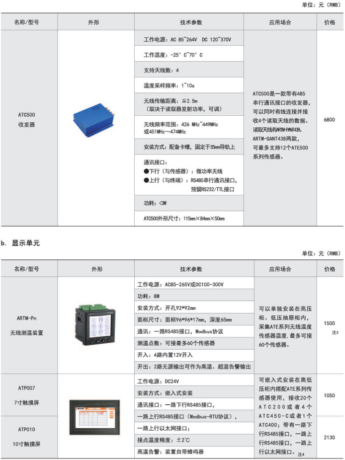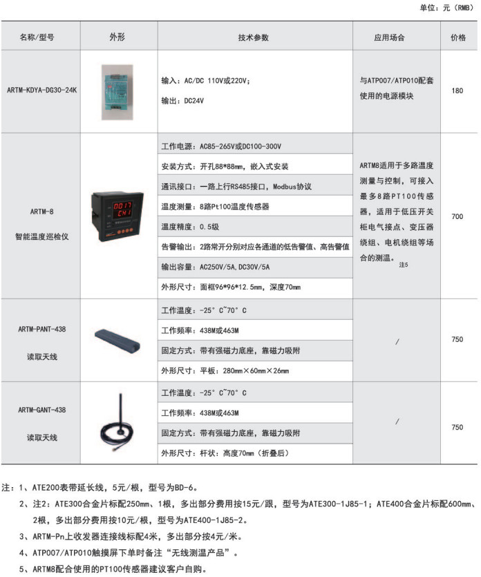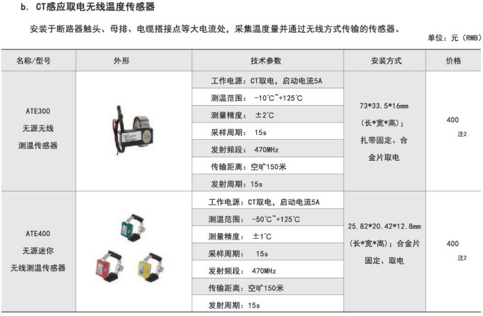 綜上所述,確定型號(hào)為:無線測(cè)溫裝置:ARTM-P9-3001臺(tái);無線測(cè)溫傳感器:ATE3009個(gè)
