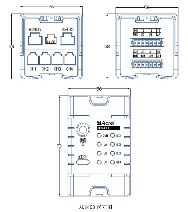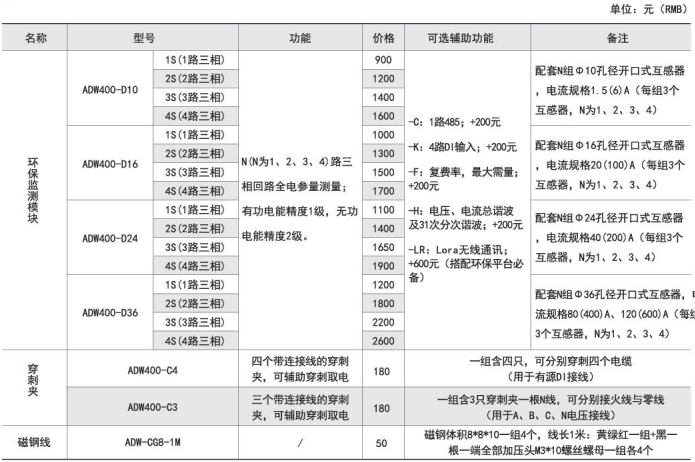 ADW400環(huán)保監(jiān)測模塊主要用于計量低壓網(wǎng)絡(luò)的三相有功電能,同時可選擇四個回路的電流輸入,具有RS485通訊和470MHz無線通訊功能,方便用戶進行用電監(jiān)測、集抄和管理??伸`活安裝于配電箱內(nèi),實現(xiàn)對不同區(qū)域和不同負荷的分項電能計量,統(tǒng)計和分析。