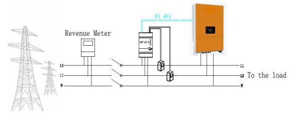 在單逆變器系統(tǒng)中,儀表直接與逆變器相連。如果您的變頻器有一個(gè)內(nèi)置的收入等級(jí)表(RGM;該變頻器 被稱為收入等級(jí)變頻器),您可以在 RGM 的同一總線上連接一個(gè)外部?jī)x表。