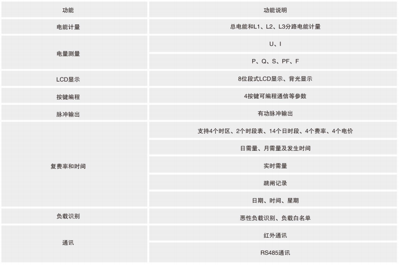 支持預付費功能。可設置基礎金額,供免費使用;可對剩余金額進行四級報警:余額不足報警(一級)、預跳閘報警(二級)、欠費報警(三級)、達到賒欠上限(四級)報警。每級報警都會導致電表背光常亮,預跳閘報警跳 閘方式可設置為不跳閘、跳閘后自動合閘以及跳閘后不合閘等,跳閘后可通過按鍵自行合閘,達到賒欠上限后電表跳閘,此時只有繳費后才能繼續(xù)合閘使用。